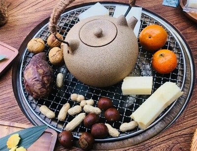 当下的“围炉煮茶”则将火塘换成了炭炉,茶则可以有红茶、果茶、奶茶等等,另外还可以烤板栗等一些小零食。