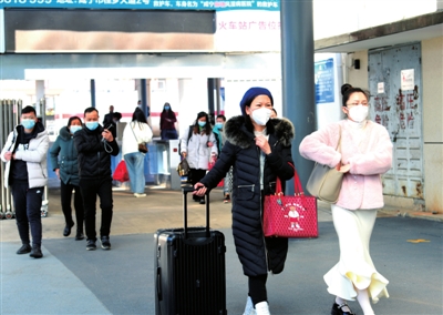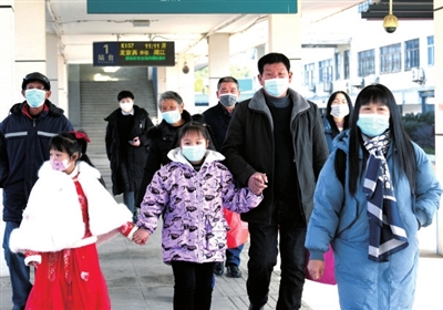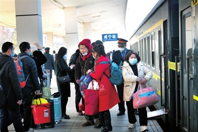 11点17分,从北京西开往湛江的K157次列车在咸宁火车站停靠,熙熙攘攘的人群手提行李箱在咸宁下车。“我去年因为疫情没有回家过年,昨天学校放假了,就从广州坐车到武汉,我母亲来接我一起转火车回咸宁。”在广州中山大学读研一的王珏挽着母亲一脸幸福地说。