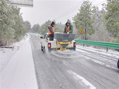 据了解,县公路事业发展中心累计出动应急作业人员127余人次,撒布固体融雪剂15余吨,出动巡查车及其他机械设备47余台次,全面有效的保障了崇阳县的普通国省干线通道的安全畅通。