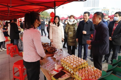 何靖致辞并宣布年货节正式开幕。他说,崇阳县举办这次年货节,对促进农产品出村进城,推广宣传崇阳本地优质特色农产品,助力乡村振兴等诸方面都具有十分重要的意义。希望各组织单位和参展企业严把商品质量关,严格落实安全生产相关措施,保证节会安全有序进行,真正让年货节成为崇阳助力乡村振兴和县域经济高质量发展的浓墨重彩之笔。随后,何靖、王顺荣参观各个展位,与各展位负责人交流,了解年货节产品销售情况。