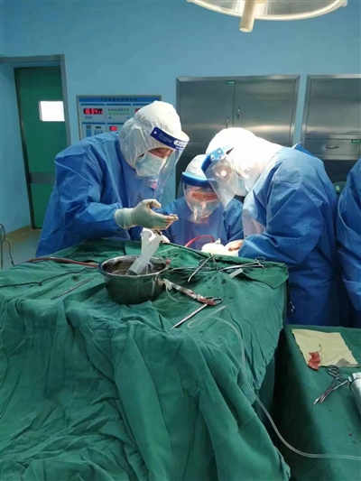 因手术做得快且好,科室同事平日称吴臻为“吴一刀”。不过因为“轻伤上阵”,这一次吴臻的手术操作不得不慢了下来,时长的增加也意味着更大的体力消耗。5个小时的操作下来,汗水早已浸透了吴臻的衣服。