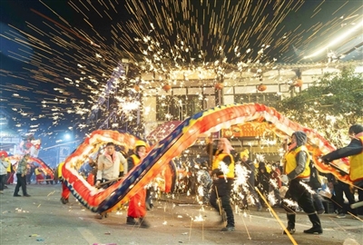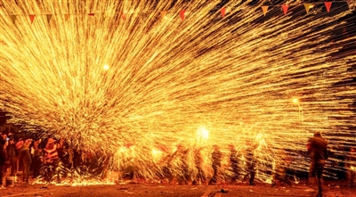 ③1月30日,民间艺人在贵州省遵义市播州区苟江镇表演“打铁花”。
