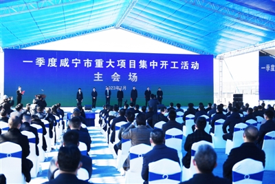 1月31日上午,2023年一季度全市重大项目集中开工活动在通城县电子信息产业园安芯美科技(湖北)封测项目工地举行。
