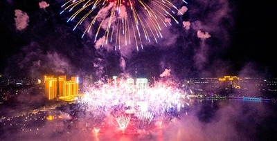各种特效焰火,一次次冲击着人们的视觉感受。观众掌声、喝彩声、欢呼声不断,手机、相机一齐闪烁记录下难忘的瞬间,现场顿时变成一片欢乐的海洋。