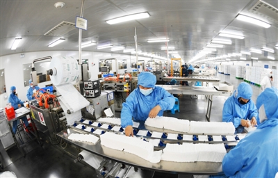 该公司位于咸宁高新区,是一家主要生产医用口罩和医用防护服的制造企业,目前日生产口罩60万只,防护服2000件,产品俏销欧美、中东等国家和地区。