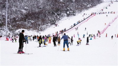 在九宫山滑雪场接待大厅,笔者看到,除了参加此次活动的运动员外,还有许多来自各地的冰雪运动爱好者在有序领取雪具,换好装备后走进滑雪场。在初级滑雪道上,很多游客第一次接触滑雪,兴奋之余又有些紧张。做好热身运动后,大家迫不及待地从初级赛道疾驰而下,尖叫声、欢笑声此起彼伏,在冰天雪地里尽情体验着雪域飞翔带来的速度与刺激,滑雪的同时更能亲近蓝天,沐浴阳光,尽情感受大自然带来的乐趣。