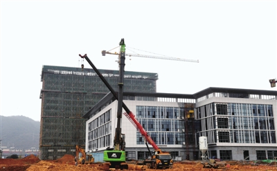 2月14日,赤壁市中医院生态新城院区正抓紧建设。