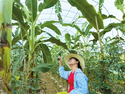 “去年,我尝试种植香蕉,专门建了两个智能大棚。”程艳告诉记者,大棚占地2亩,共栽种了270棵香蕉树,经过培育发蔸,现在已有500多棵香蕉树,很多游客慕名来打卡。