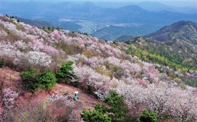 大幕万亩野樱,学名叫“山樱花俗称“野樱花”“古樱花”,先开花后长叶极具观赏和研究价值,一般花期为3月到4月中下旬。大幕山区野樱花树现存近万株,大的有2尺围,树龄有五、六十年,大幕山野樱花群落数量之多、分布之密集,实属罕见。