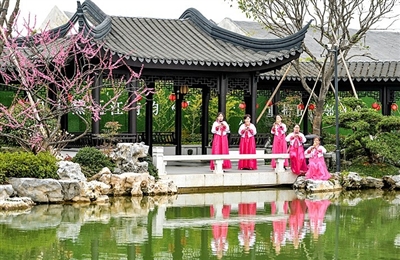 在旷野梅花枝头、小桥流水人家的画卷里,葫芦丝合奏《月光下的凤尾竹》《映山红》,曲调悠扬。娓娓动听的旋律,给人心旷神怡的感觉。