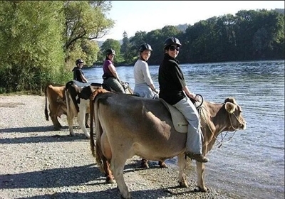 近日,瑞士阿尔卑斯山的一家农庄推出了一项骑牛观光活动,这种新奇的方式吸引了很多游客。骑上温顺的奶牛“坐骑”,游客可以慢悠悠地欣赏阿尔卑斯山和莱茵河的秀美风光。