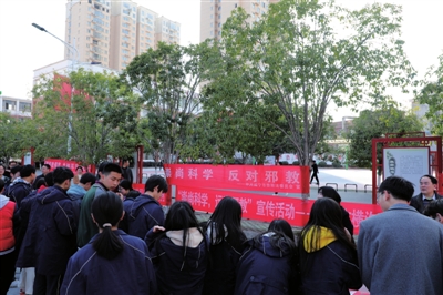 2月27日下午,咸宁市、区两级政法委,市法学会在咸宁市横沟高级中学开展反邪教警示教育进校园宣传活动。