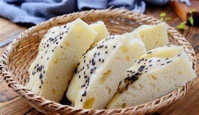 发糕也可用架子支撑着直接放在煤炉子上烤,当一边出现泡泡时翻烤另一边,烤得年糕鼓胀时即可,也可用糯米和大米按一定比例混合后制作。