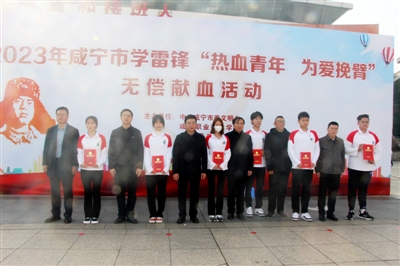3月4日,我市庆祝第60个学雷锋纪念日暨“2023年学雷锋无偿献血”活动在咸宁职业技术学院举行。当天,咸宁职院有93名师生参加无偿献血,献血量共达25500毫升。这标志着我市2023年学雷锋“热血青年 为爱挽臂”无偿献血活动正式开启。