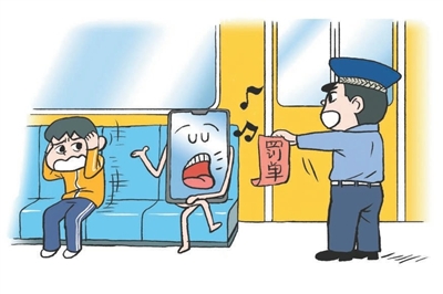 近日,一乘客在乘坐地铁时因手机声音外放而收到罚单,许多网友建议"全国推广"。琚理/漫画
