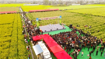活动还同步开展了田间音乐会、乡村美食节、特产展销等,赏花品春、打卡拍照,丰富多彩的活动让前来游玩的市民游客惊喜连连。在特产展销区,中药材、羊肚菌、蜂蜜等特色农产品展台前,围满了前来购买的人群。青山镇南林村的甲鱼养殖户龚丰甫从2015年起流转260亩鱼塘养殖甲鱼,每年可以卖出10万斤甲鱼,今年油菜花节,他也带着甲鱼来到活动现场,寻找更多销路。
