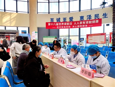 今年3月9日是第十八个世界肾脏日。今年的主题为:“人人享有肾脏健康——应对突发风险,关心弱势群体”。当天,咸宁市中心医院肾内科在门诊大厅举办了健康知识讲座和义诊活动。