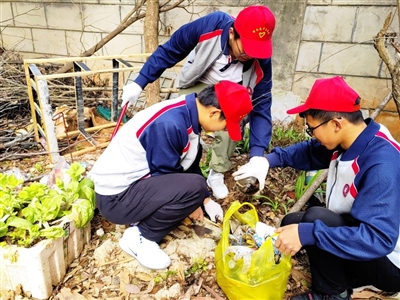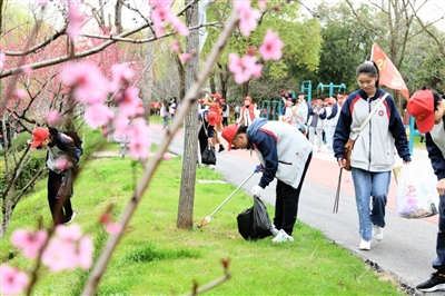 3月12日,鄂南高级中学2022级高一年级学生沿着淦河边捡拾生活垃圾。当日,该校高一年级全体学生、教师及家委代表共1300余人,分赴市人民广场、学府社区、十六潭公园等地开展志愿服务活动,现场捡拾垃圾、除杂物、铲牛皮癣、摸排破损公共设施等。