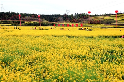除了精美歌舞,靓丽的油菜花海才是油菜花节的“重头戏”。今年,大路乡杨狮坑村进一步扩大油菜种植面积,打造绿色菜籽油品牌,提供多样的土特产品,优化村庄人居环境,完善旅游基础设施,高标准服务好广大游客。