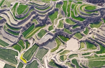阳春三月,位于山西省芮城县永乐镇的黄土梯田被层层绿色的麦苗覆盖,金黄色的油菜花点缀其间,春意浓浓,美不胜收。