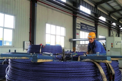 3月30日,记者走进位于官桥镇的湖北欧维姆缆索制品有限公司缆索厂房内,只见繁忙的流水线上一根根闪着金属光泽的桥梁缆索正源源不断地下线。