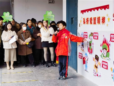 “大家好!我是小小红色宣讲员陈子航,欢迎你们来参观第六小学党润童心文化长廊……”3日,清脆的童声回荡在第六小学家长开放日活动的会场,家长们认真地聆听着。陈子航同学是咸宁市第六小学三年级2班学生,他也是学校红色宣讲队24名成员之一,正在为前来参观的家长进行讲解。
