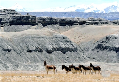 近日,在西藏阿里地区札达县的藏野驴在漫步。藏野驴为国家一级重点保护动物、青藏高原特有物种。