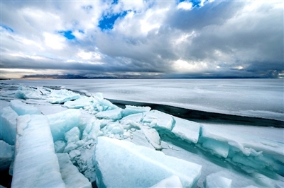 近日,新疆博尔塔拉州博乐市赛里木湖进入冰湖破冰融化期,大量蓝冰涌向湖边,呈现独特蓝冰的景观。(本报综合)