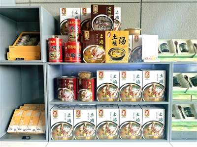 女老板周桂云介绍,加工厂年产鸡汤10万罐,有真空和罐装(铁罐+瓦罐)两类包装,产品供应武汉中百仓储、武商量贩等120多家门店,并在拼多多和淘宝等购物平台上架销售。