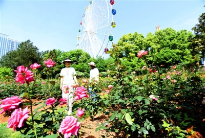 眼下,正值月季花开放时节,该园23个品种1000余棵月季争相绽放,花期将持续三个月。