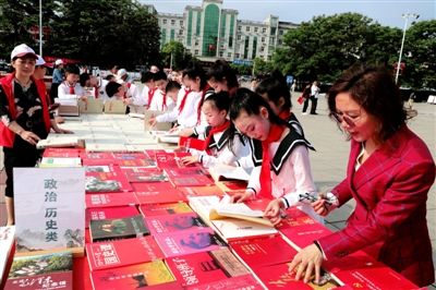 当天,通山县举行“世界读书日”新时代文明实践系列活动,发出“您捐一本书,圆我一个梦”号召,现场发放《爱心捐书倡议书》,共收到该县各机关单位、爱心协会、热心市民捐书2万余册。