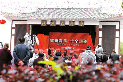 4月24日,白霓镇第二届“霓善霓美,十个最美”评选活动颁奖典礼在白霓镇洪泉村举行,共见典型事迹,共沐文明乡风,共传社会正能量。湖北省演艺集团党委委员、副总经理周根源,县委常委陈熙,县委常委、县办主任黄齐飞出席活动并为“最美人物”颁奖。