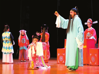 弓舞弦揉,弦管齐鸣。在特制小提琴的悠扬曲调中,提琴戏歌曲《少年中国说》拉开演出序幕,演员专业的舞步和扎实的唱功展示了少年的蓬勃朝气和坚强意志,也表达了青年一代传承非遗文化的坚强信心,令观众沉浸在戏曲的氛围中,感受到传统文化魅力,为“老”文化赋予“新”生命。