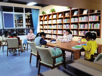 书房开放后的这段时间,只要得空,晚饭后,黄娟都会习惯性地带着两个孩子来这里一起徜徉书海。孩子们的睡前活动也从过去的看看电视或者在附近溜达玩耍,变成了现在的听听故事、读读书。
