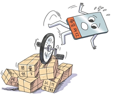 近日发布的《直播带货消费维权舆情分析报告》指出,直播带货“翻车”近半数因产品质量问题。 琚理/漫画
