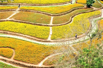 5月7日,游客在广西南宁市青秀山风景区缤纷花田景点赏花(无人机照片)。
