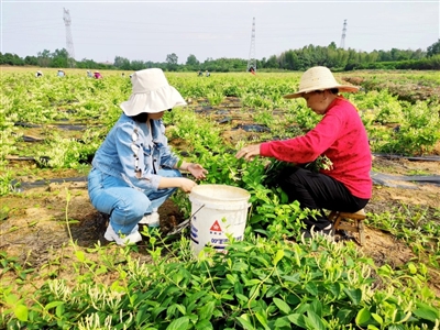 “金银花为多年生半常绿藤本植物,清香淡雅,具有清热解毒、疏散风热的作用,可入药,也可做茶,市场需求量非常大,价格可观,特别是近几年,金银花日益受到消费者的喜爱。”向阳湖镇宝塔村党委副书记陈祥军介绍,“2020年,村里多次到外地考察学习,引进了品种优、效益高的‘百花一号’金银花,流转近100亩地,全部栽种金银花。”