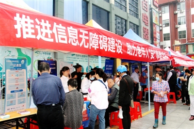“叔叔阿姨,你们看一看我们反电诈知识,上网时千万不要点击来历不明的链接……” “国家反诈中心的App下载了吗?”5月17日,市经济和信息化局组织咸宁移动公司等在温泉中百仓储广场开展了“推进信息无障碍建设,助力老年人安享数字生活”公益活动,旨在提高老年人的诈骗防范意识和能力, 帮助老年人更好地共享信息化发展红利。