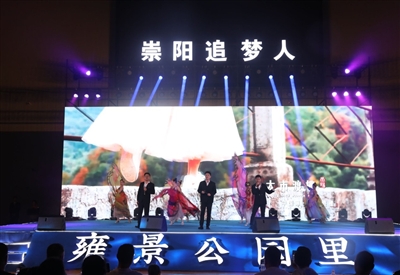 晚会现场,歌伴舞《我家在崇阳》《水滴石穿》、崇阳提琴戏《双合莲》等崇阳本土歌曲和传统剧目,唱出了崇阳在外游子对家乡的热爱,唱出了崇阳人水滴石穿、坚韧不拔的精气神,更唱响了崇阳文化的自信,引起了全场观众的大合唱。动感的音乐,欢快的舞步,快乐男声韦杰和星光大道歌手龚丹等知名歌手为现场观众带来的劲歌热舞,瞬间点燃了全场的激情。