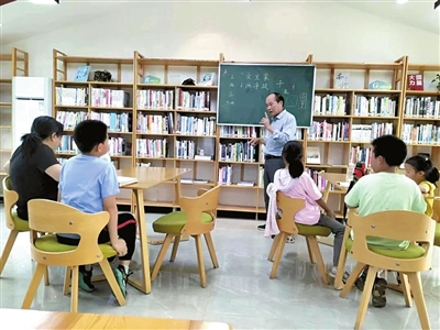 市图书馆开设了“读好书、写好字”书法公益课,湖北科技学院艺术学院退休老师任能武义务为相山书院香城书房里的孩子上课。