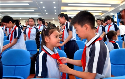 据了解,当天该校有96名同学光荣加入中国少年先锋队,建立了6个中队。