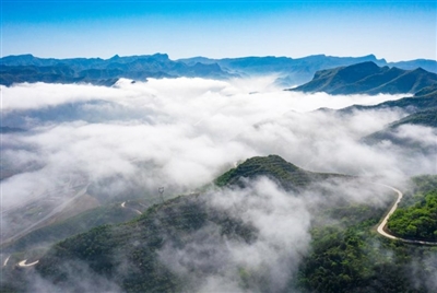 近日,一场大雨过后,太行山脉出现云海奇观。正值日出之时,太行山上左权县境内层层云雾堆积,如滚滚而来的江流在山巅奔腾翻涌,形成了一片绵延不绝的云海。