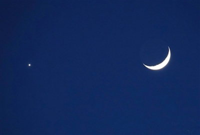 近日,金星和月亮在夜空“邂逅”,上演浪漫的“星月童话”,为初夏的傍晚增添一抹亮色。