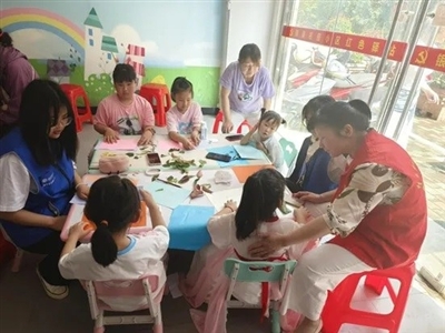 5月27日上午,桂花路社区新时代文明实践站联合湖北科技学院志愿者在银泉名座儿童之家组织青少年开展少儿手工制作树叶贴画活动,通过手工制作引导孩子们去发现美、展现美、创造美。