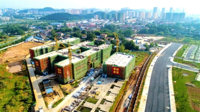 5月29日,记者在大洲湖学校项目施工现场看到,学校主体建设已封顶,工人们正加紧对内部及配套设施进行施工。