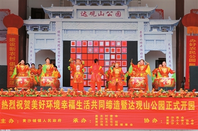 在6月3日上午开园活动当天,一场精彩纷呈的演出在达观山大舞台隆重上演。威风锣鼓、广场舞、傣族舞、武术等各类老百姓喜闻乐见的节目纷纷登台,拥有300万粉丝、老家是黄沙铺镇毛杨村的网红歌手毛惠的三首抖音热曲更是将现场气氛推向了高潮。