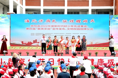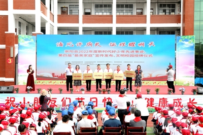 5月31日,崇阳县2022年度新时代好少年先进事迹、第四届“最美家庭”宣传发布、文明校园授牌活动在崇阳县实验小学举行。县委副书记、政法委书记梁薇,副县长夏文强,县政协副主席曾维艳和全校师生一起,共同庆祝“六一”国际儿童节。