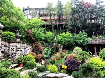 在项目负责人程锦铭的引路下,放眼望去,酒店庭院建设落落大方,有观景亭、木椅等,俨然一幅泼墨山水画。酒店内部房间设计也非常精致,特别是露天浴缸的设计,让人眼前一亮。