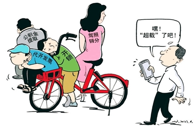 近年来,被称为“城市牛皮癣”的小广告,从公交站、路灯杆、小区楼道转向共享单车,既让用户厌烦,也给运营方造成损失,更影响市容市貌。李嘉/漫画