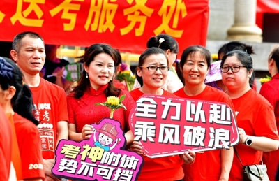 考场内,考生们奋笔疾书;考场外,老师和家长们在默默等待。